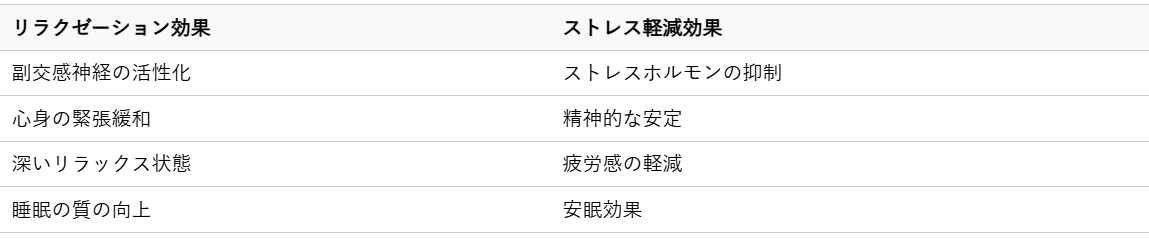 頭部の緊張が解放されることで、首や肩の負担も軽減され、自律神経の働きが整いやすくなるなど、全身への良い影響が期待できます。