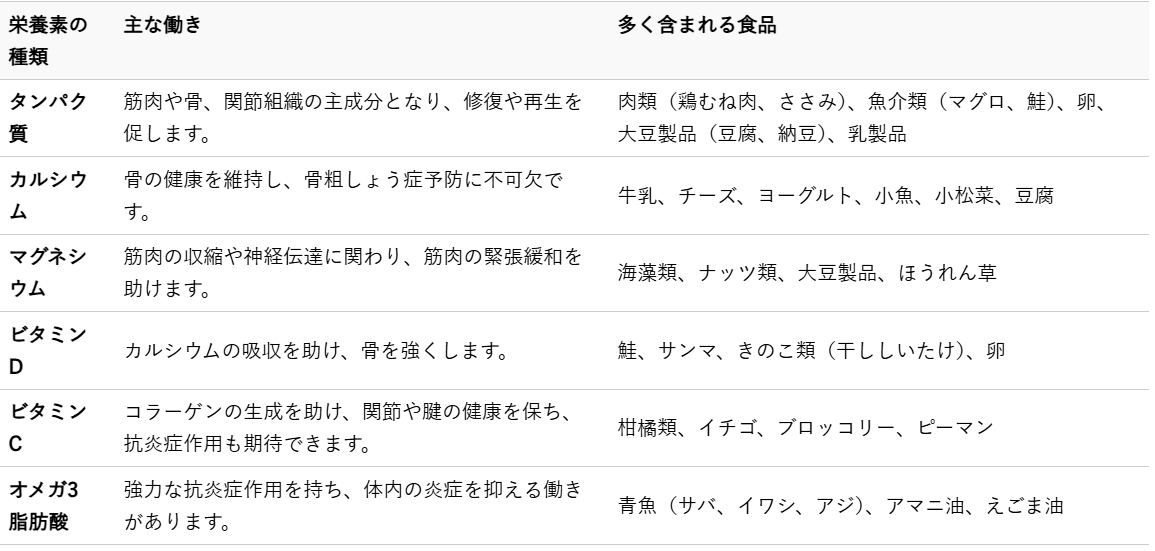 体内の炎症を抑えたり、骨や筋肉を強くしたりする栄養素を積極的に摂ることで、腰痛の根本的な改善に繋がる可能性があります。