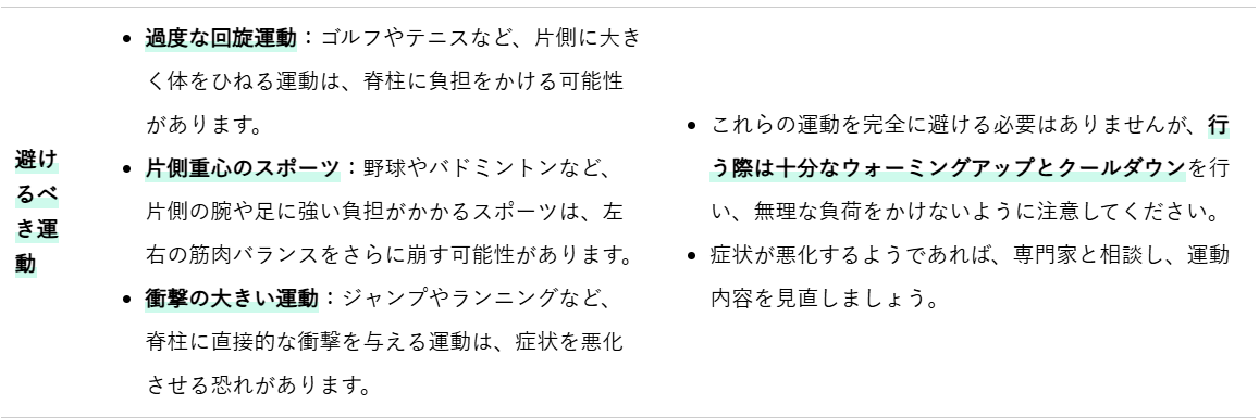 側弯症の腰痛に効果的な運動と避けるべき運動